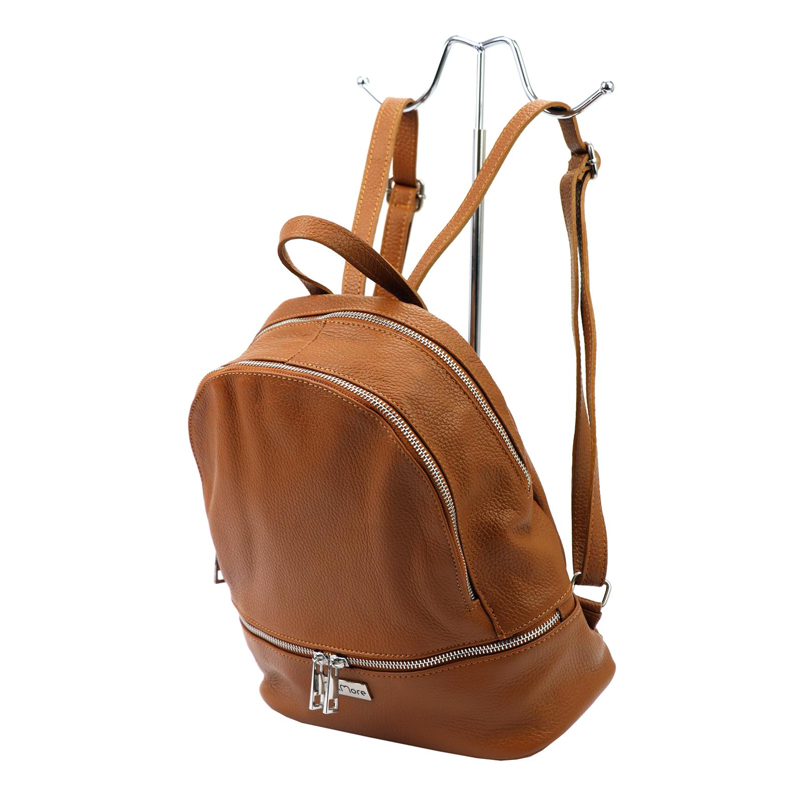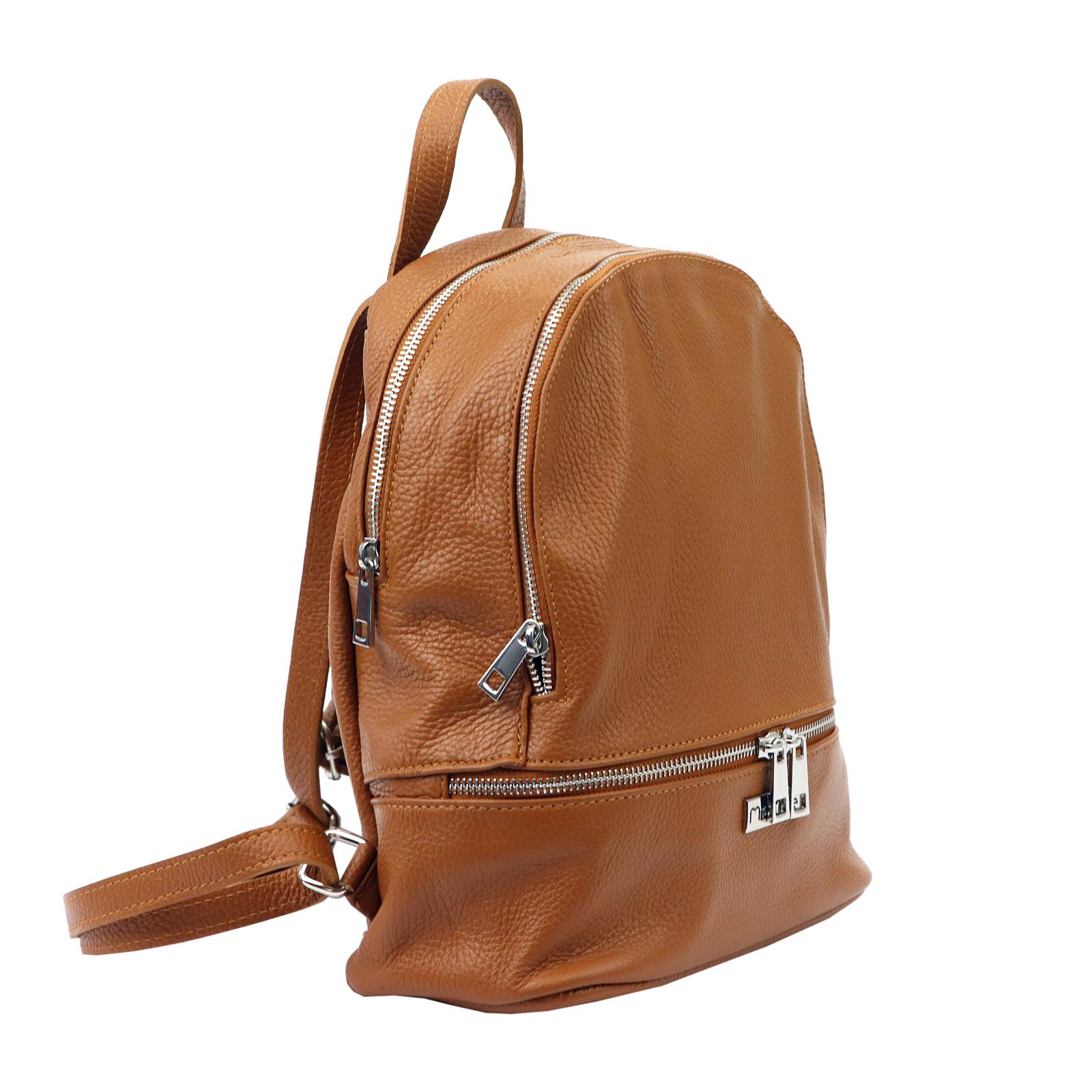Krásný hnědý kožený batoh, který je uzavíratelný na zip. Uvnitř se nachází dvě oddělené kapsy.